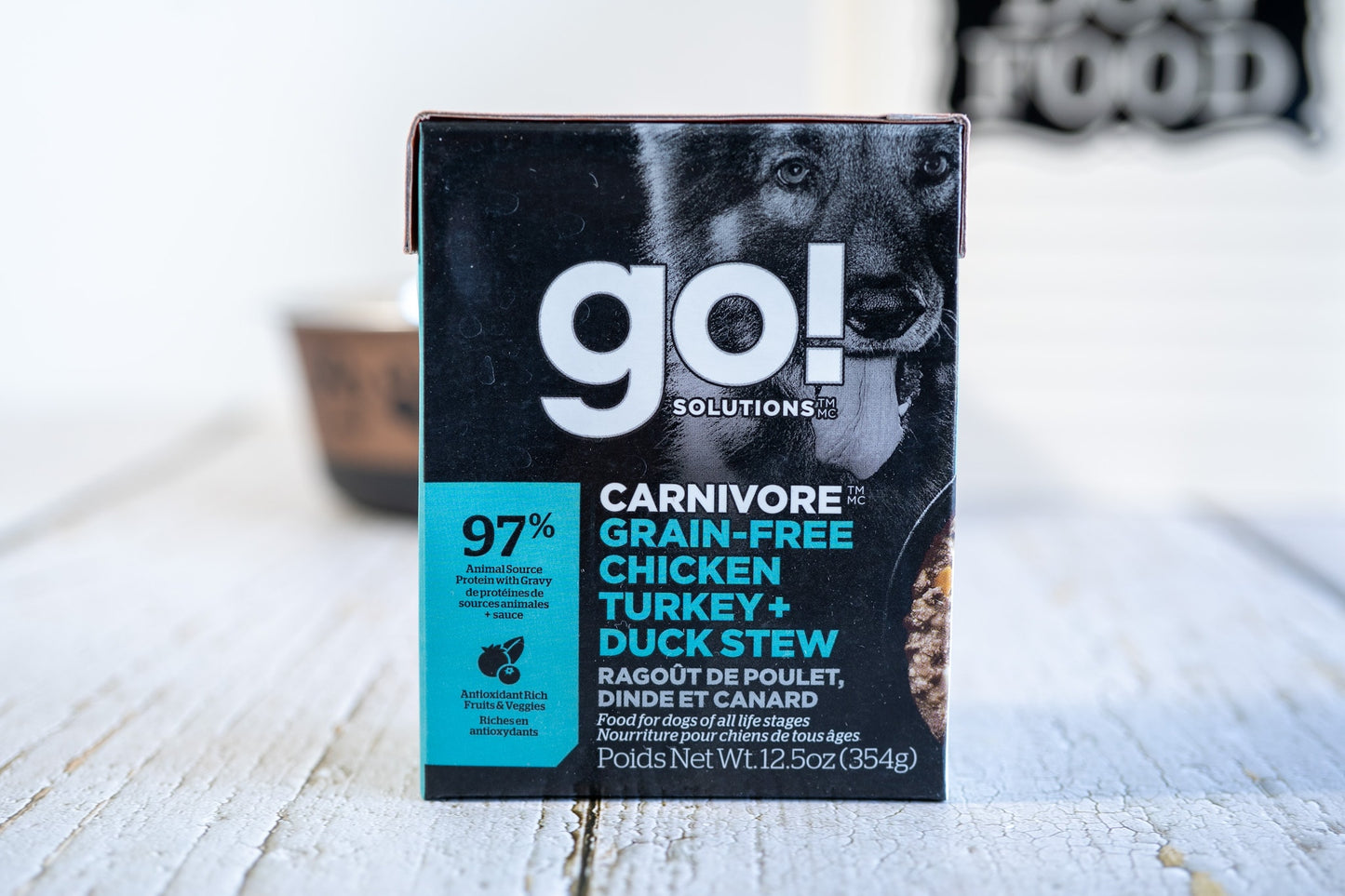 Packed with drool-inducing animal proteins to support strong, lean muscles, this tasty Go! Solutions Carnivore recipe provides natural antioxidants from fruits and veggies, while the delicious stew texture and tasty gravy create a meaty flavour that dogs just love.