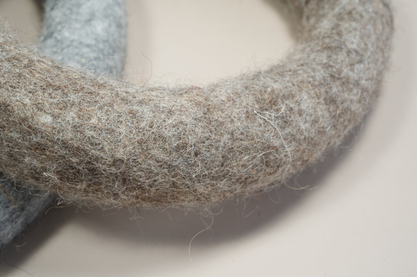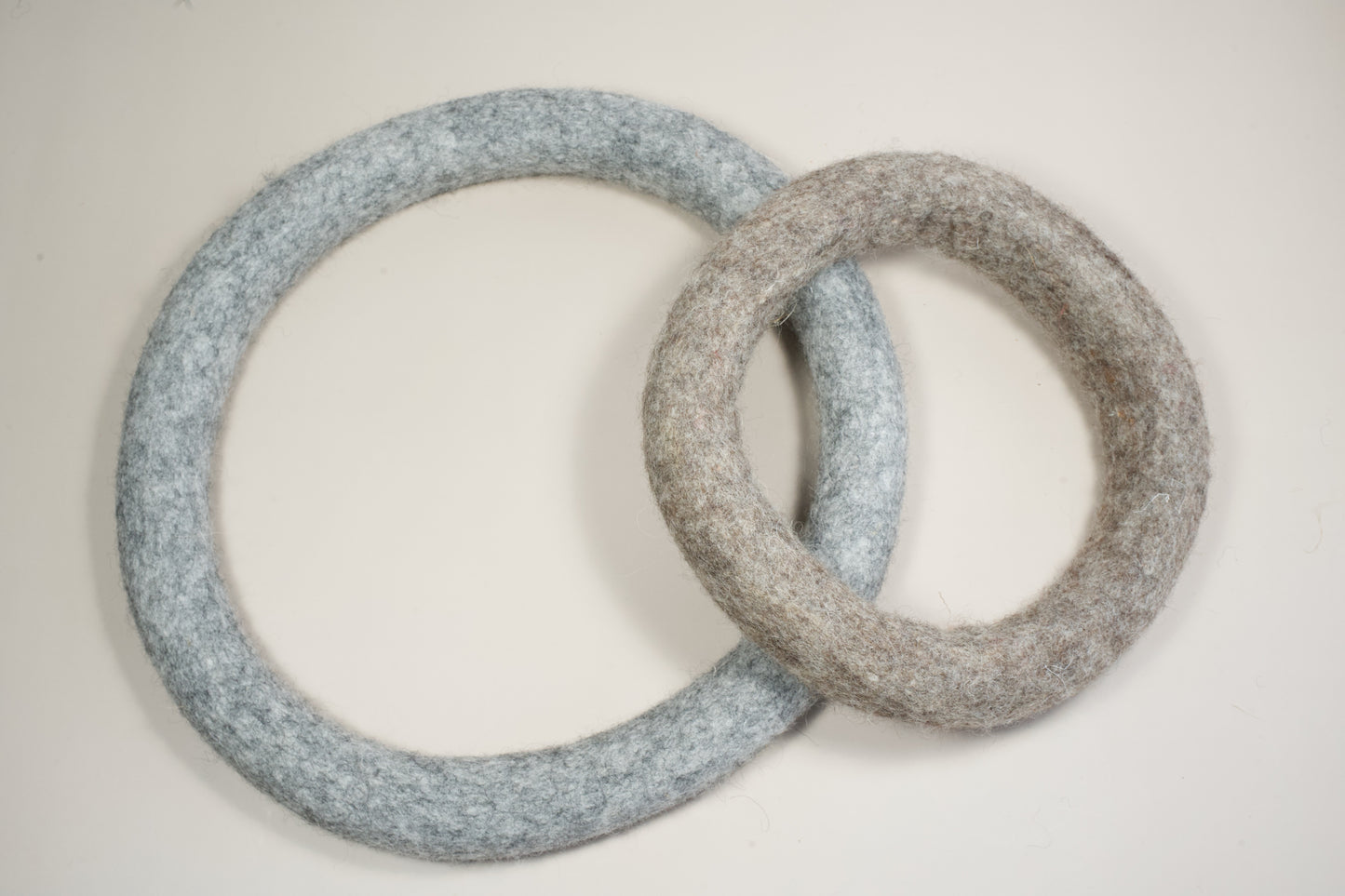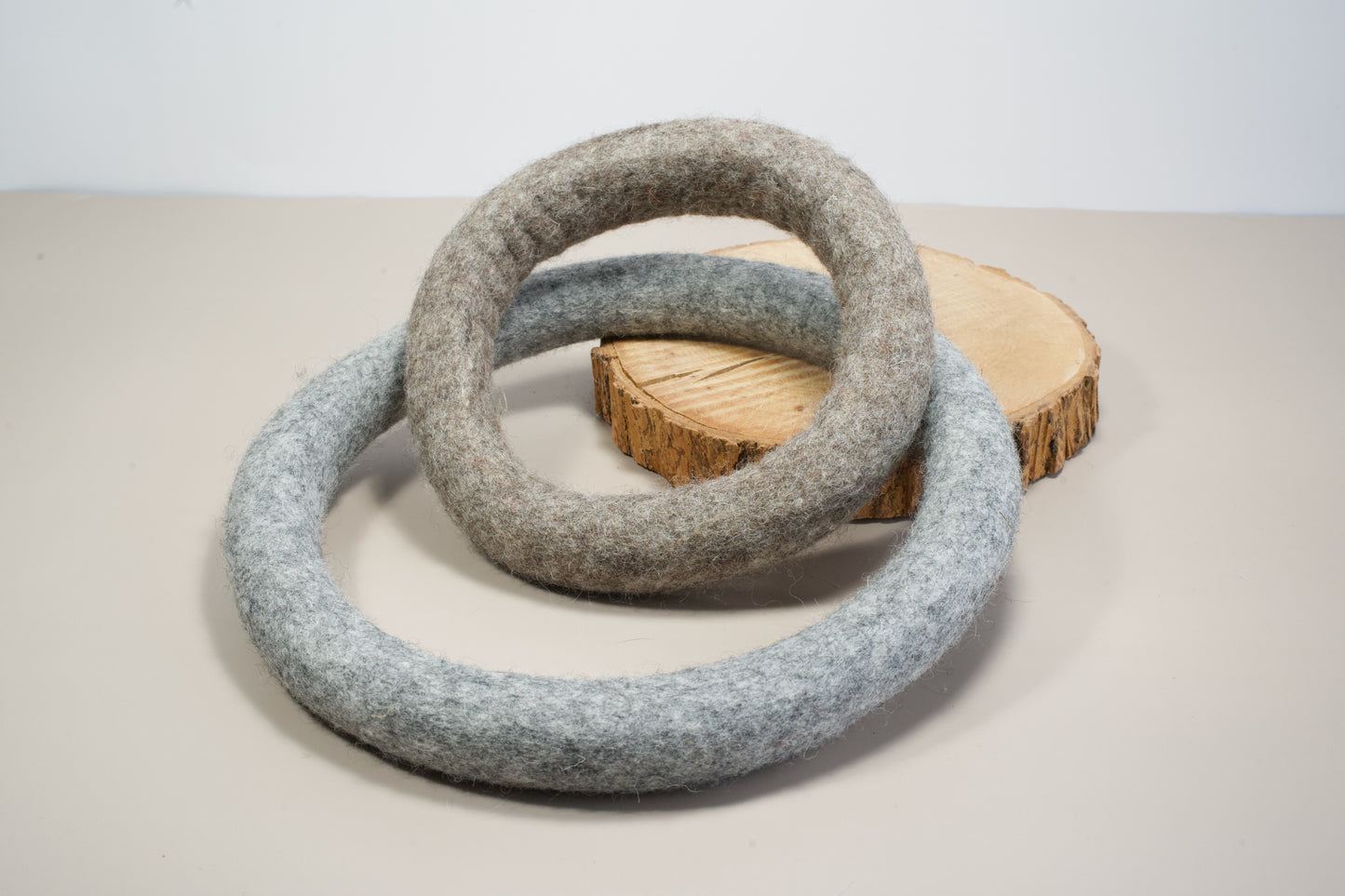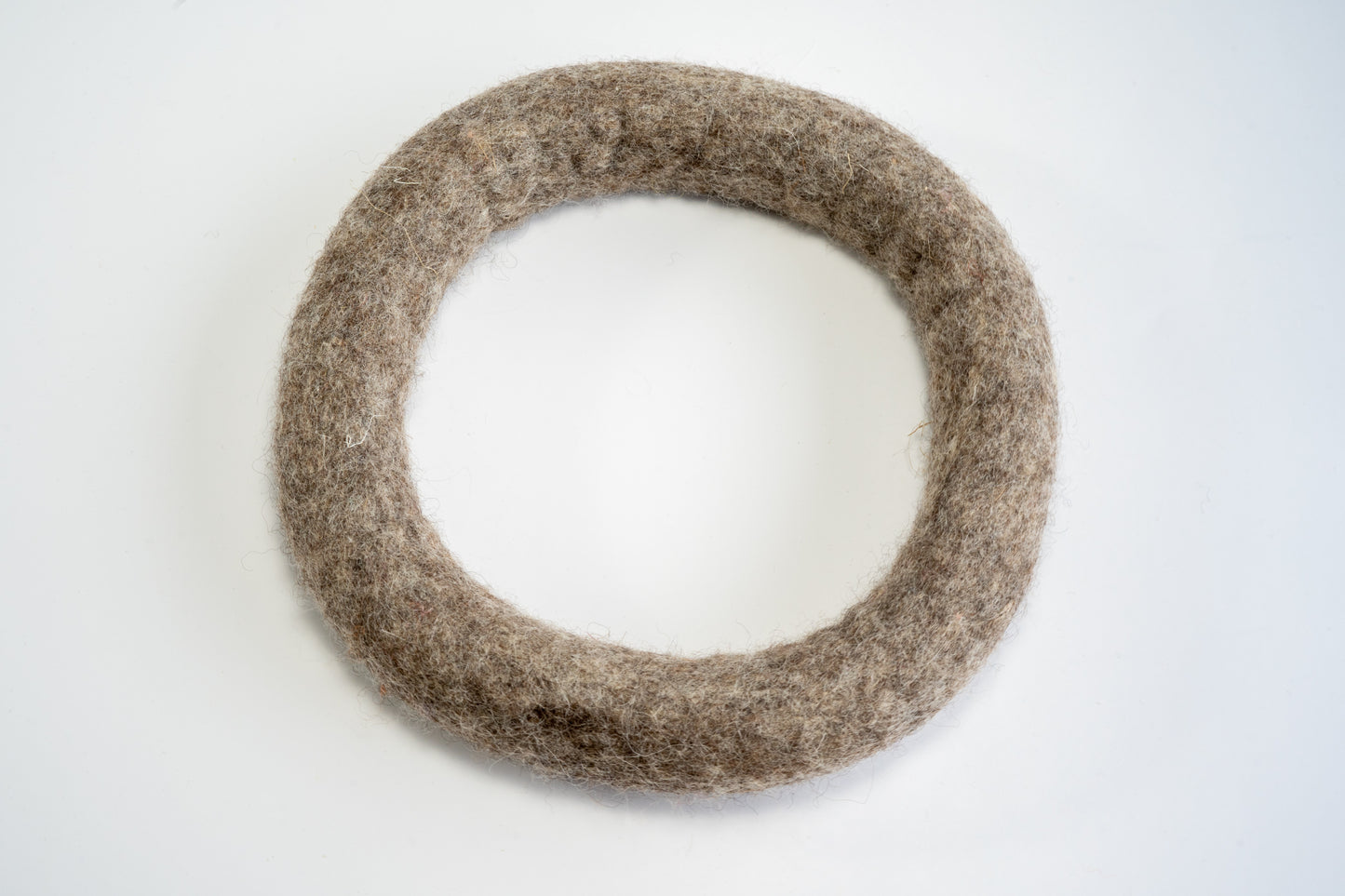 Handmade 100% natural wool Frisbee-type dog ring for playing throw and catch. Perfect for playing indoors or outdoors with your four-legged friend.